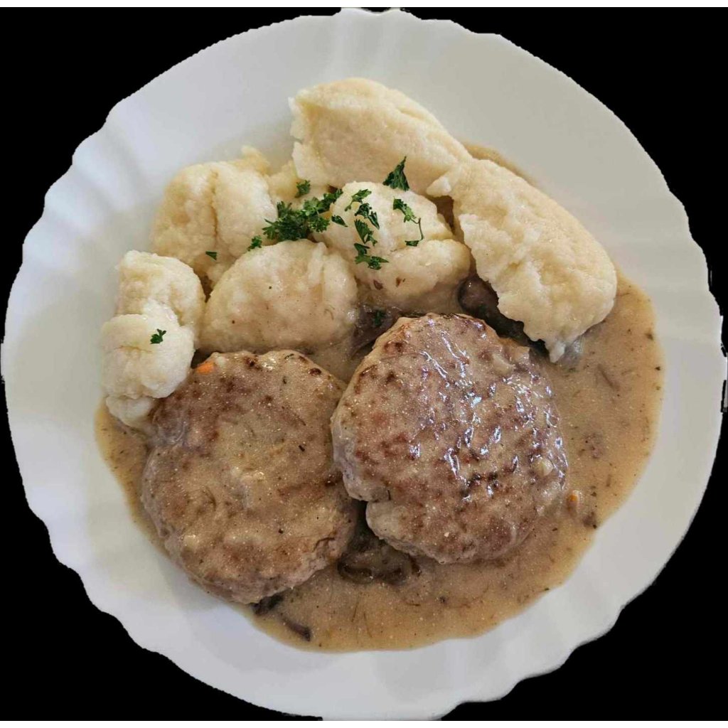 180/200g Hříbková sladkokyselá omáčka, sekané řízečky, gnocchi / rýže