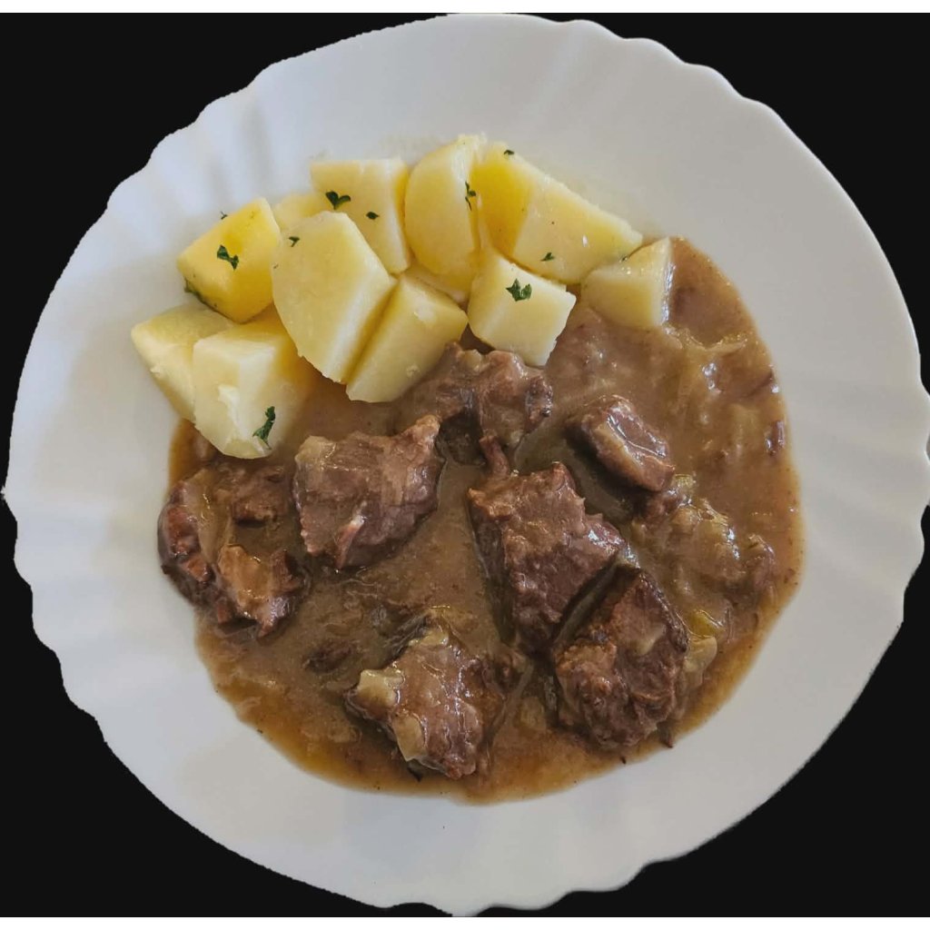 180/250g Hovězí dušené v kapustě, vařené brambory