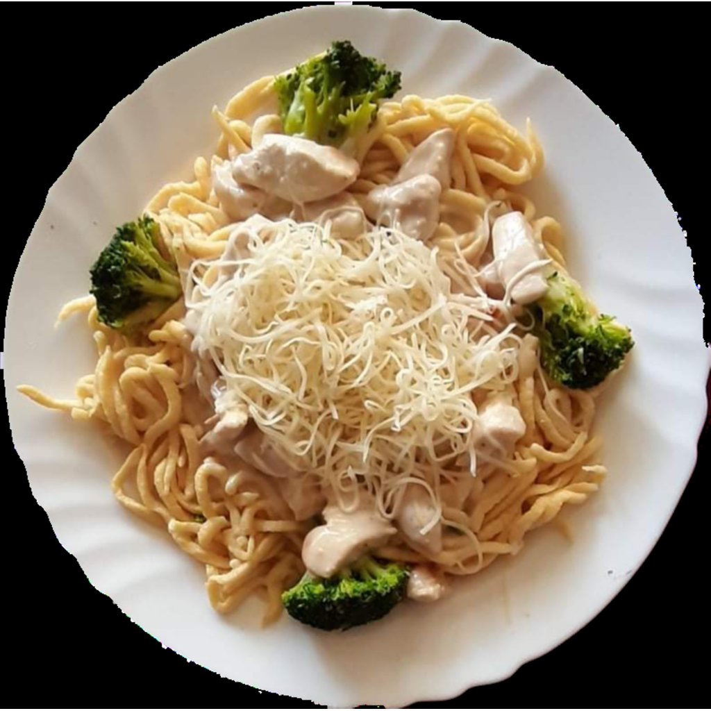 180/250g Zapečené špecle s kuřecím masem, brokolicí a sypané sýrem