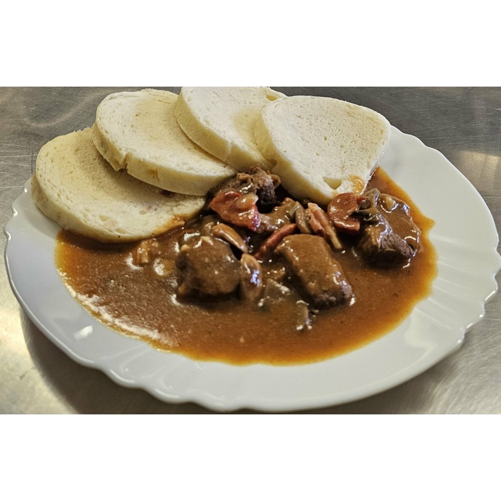 180/250g Myslivecký hovězí guláš,houskový knedlík / těstoviny