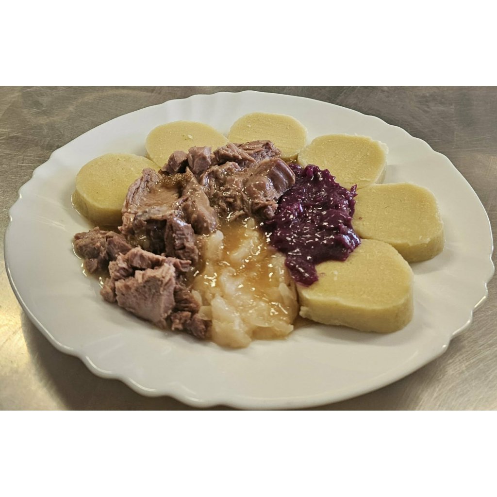 180/250g 05. Trhané krůtí maso, zelí, bramborový knedlík